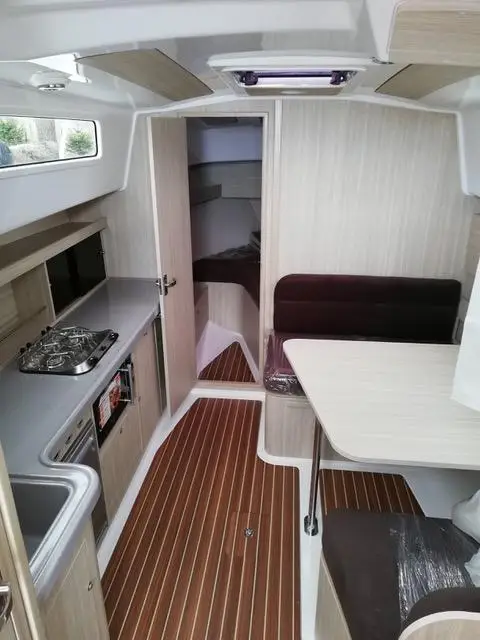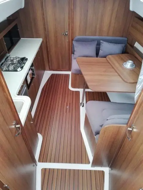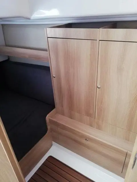 • galley: gas hob, set of crockery (6 x soup plates, dinner plates, glasses, cocktail glasses, 1 salad bowl), set of cutlery (6 x fork, spoon, teaspoon, 1 x kitchen knife, 1 x soup spoon, 1 x frying spoon), 2 saucepans, kettle, frying pan