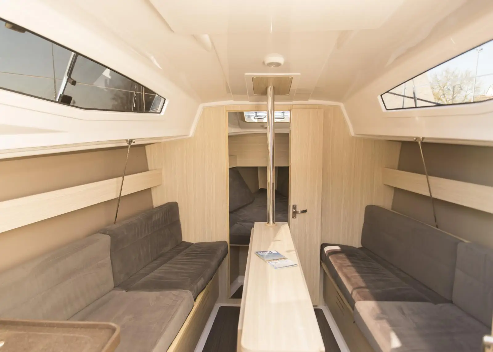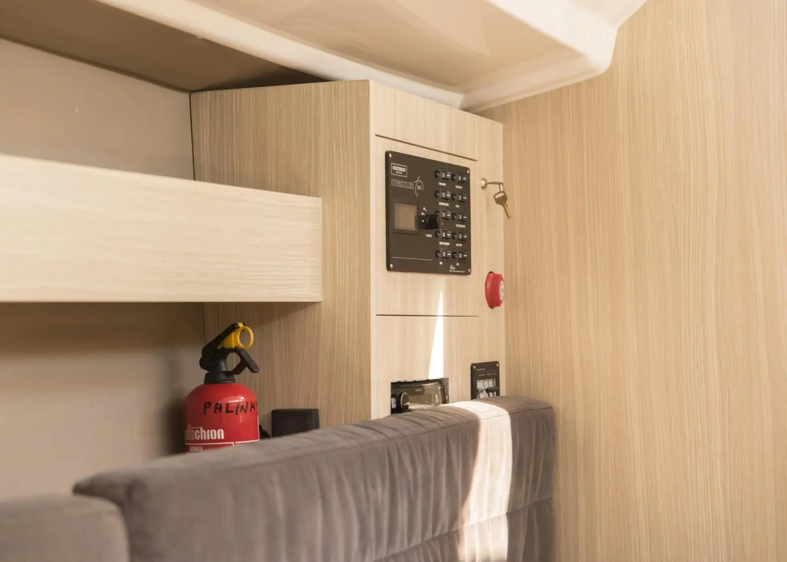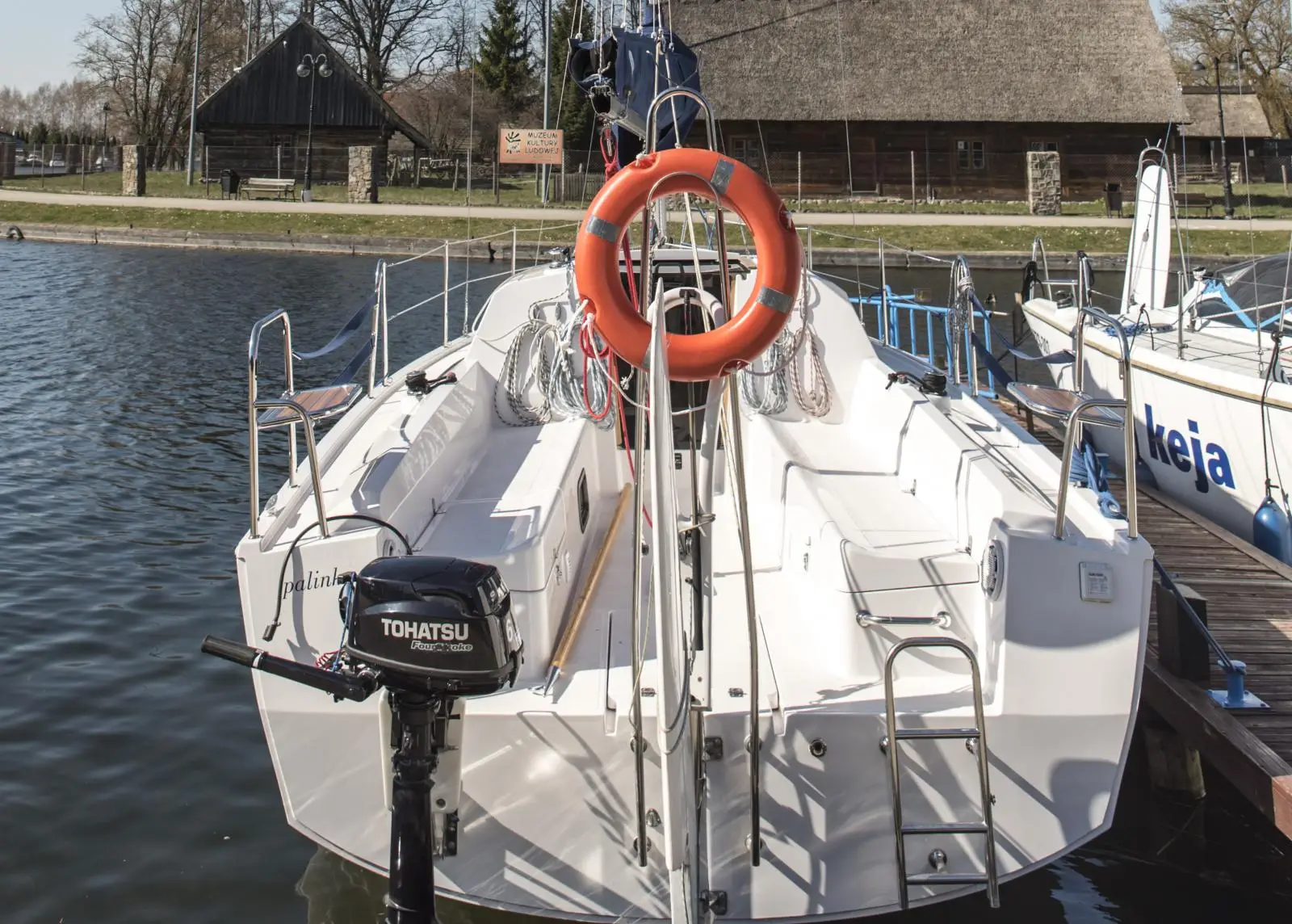 • Kompletne wyposażenie kambuza: 2 garnki, patelnia, durszlak, chochelka, sztućce, nóż do chleba, kubki, talerze, deska do krojenia, miski