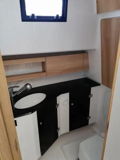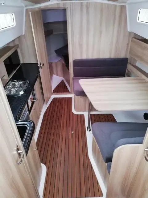 • galley: gas hob, set of crockery (6 x soup plates, dinner plates, glasses, cocktail glasses, 1 salad bowl), set of cutlery (6 x fork, spoon, teaspoon, 1 x kitchen knife, 1 x soup spoon, 1 x frying spoon), 2 saucepans, kettle, frying pan
